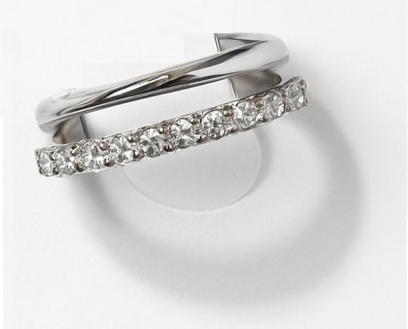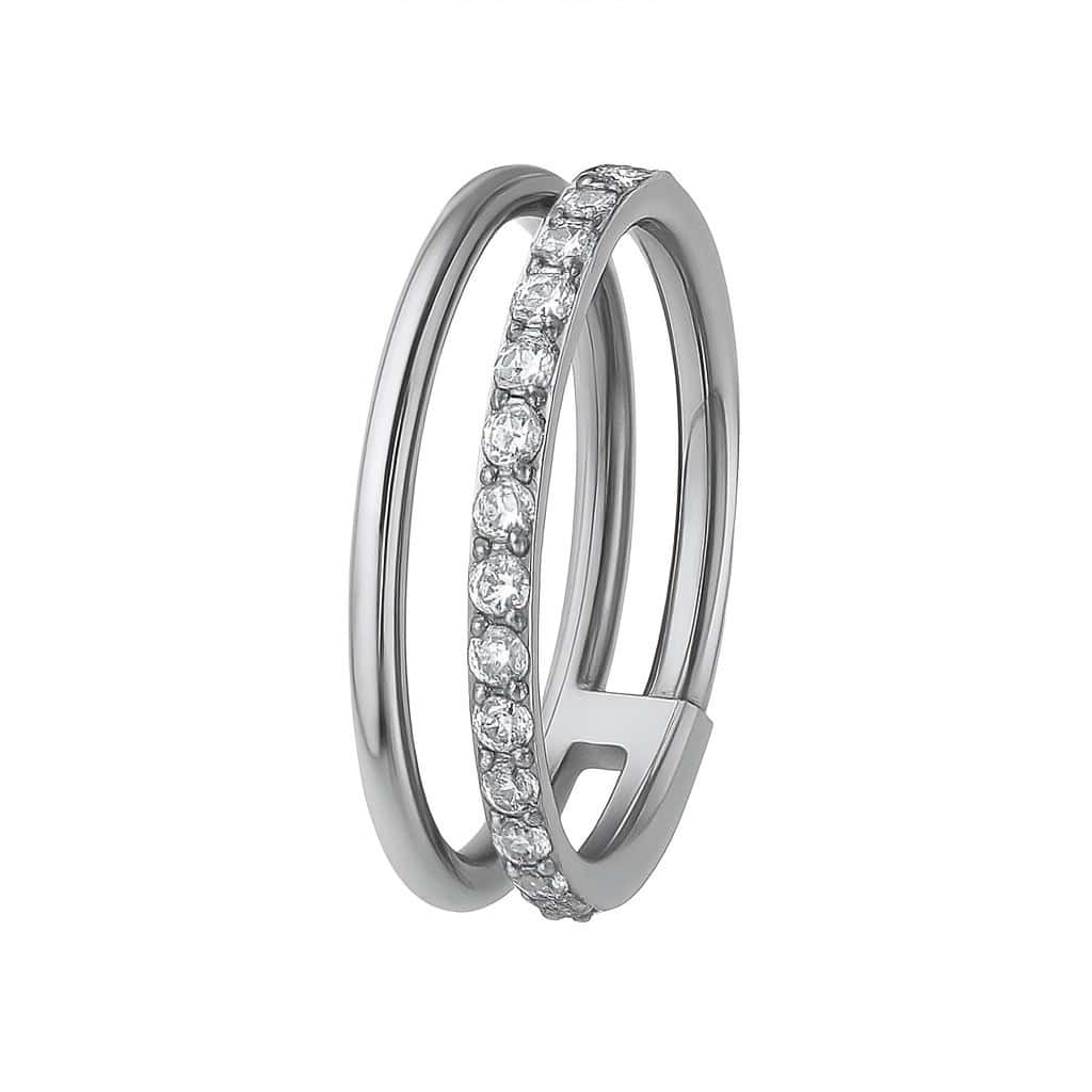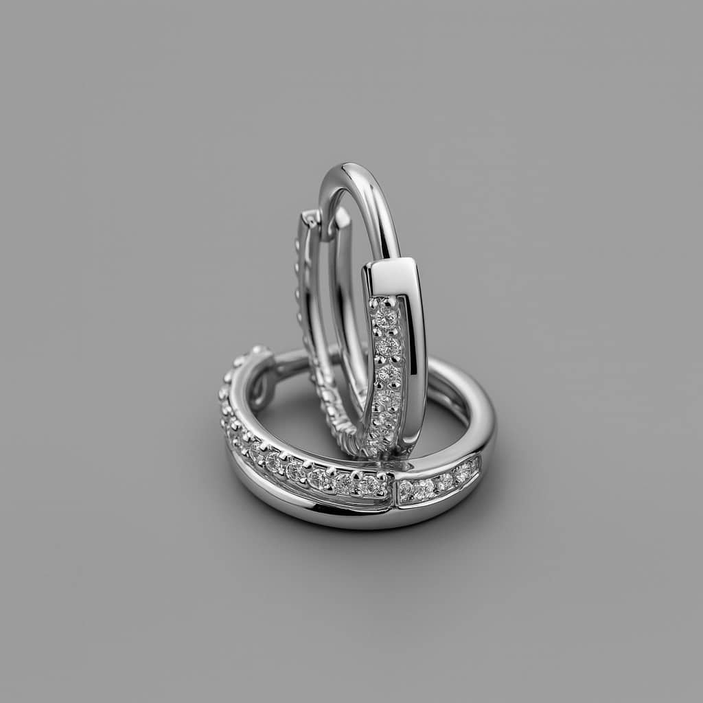 עגיל חישוק (בודד) כפול זהב לבן עם שיבוץ יהלומי מעבדה