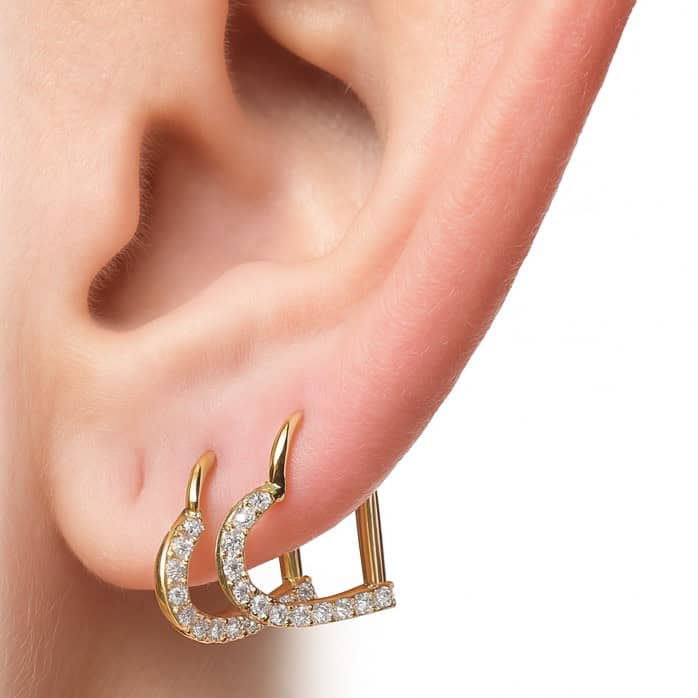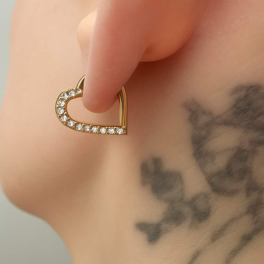 חישוק (בודד) לב מזהב עם שיבוץ יהלומים עגיל יוקרתי לאוזן