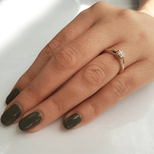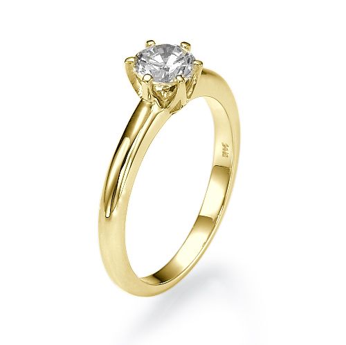 טבעת אירוסין קלאסית עם שיבוץ של 6 שיניים האוחזות ביהלום ומעצימות את הברק והניצוץ שלו ניתן לשבץ בטבעת נאדין יהלום מרכזי במשקל 0.40 - 1.00 קראט בכל דרגת איכות צבע וניקיון. טבעת אירוסין זהב צהוב עם יהלום מרכזי במשקל: 0.41 קראט (משקל יהלומים כולל 0.41 קראט) בצבע F וניקיון יהלום SI1.
