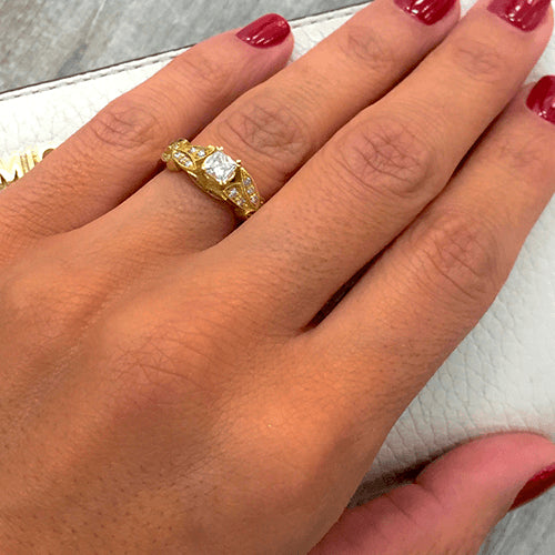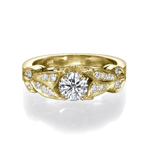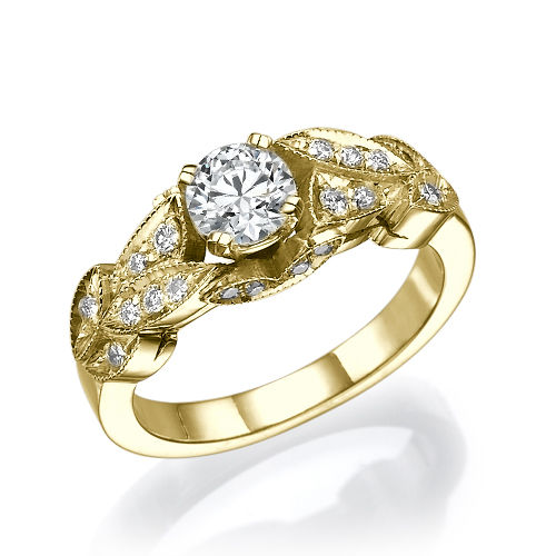 טבעת אירוסין Vintage עתיקה מזהב צהוב בעלת מראה מיוחד מאוד זו הטבעת המושלמת להצעת נישואין לאישה המיוחדת בחייך. טבעת אירוסין זהב צהוב עם יהלום מרכזי במשקל: 0.51 קראט (משקל יהלומים כולל 0.75 קראט) בצבע E וניקיון יהלום SI1.
