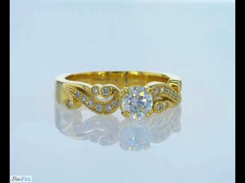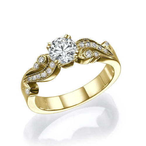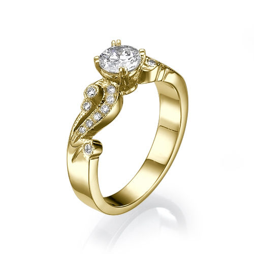 טבעת אירוסין בעיצוב וינטאג עתיק. משובצת 10 יהלומים מבריקים בגדלים שונים לאורך כל הטבעת ויהלום עגול או פרינסס במרכז. זוהי בהחלט טבעת מיוחדת המתאימה לנשים האוהבות סגנונות ייחודים. טבעת אירוסין זהב צהוב עם יהלום מרכזי במשקל: 0.51 קראט (משקל יהלומים כולל 0.71 קראט) בצבע F וניקיון יהלום SI1.