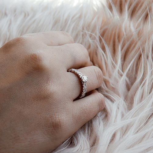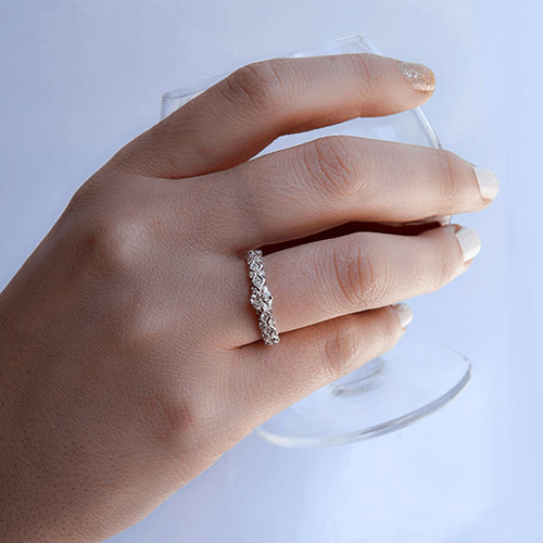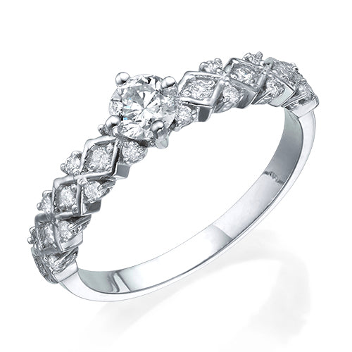 טבעת יהלומים "וינטאג' משולשים" זהב לבן