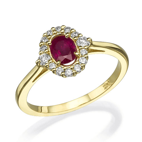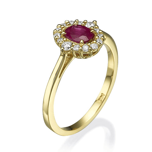 טבעת וינטאג' המשובצת אבן רובי במרכז הטבעת זהב צהוב