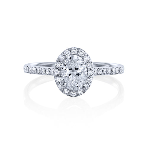טבעת אירוסין בעיצוב אופנתי אשר במרכזה משובץ יהלום מוארך בחיתוך אובל אשר מוקף יהלומים עגולים מסביבו ועל הטבעת עצמה. ניתן להזמין את הטבעת במגוון גדלים של יהלום מרכזי ובזהב צהוב או לבן ללא תוספת תשלום. טבעת אירוסין זהב לבן עם יהלום מרכזי במשקל: 0.51 קראט (משקל יהלומים כולל 0.81 קראט) בצבע F וניקיון יהלום SI1.