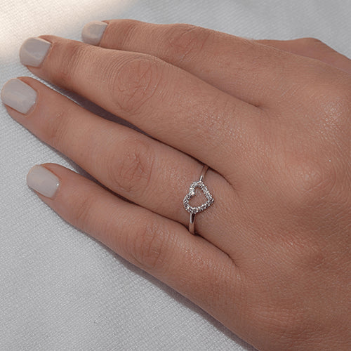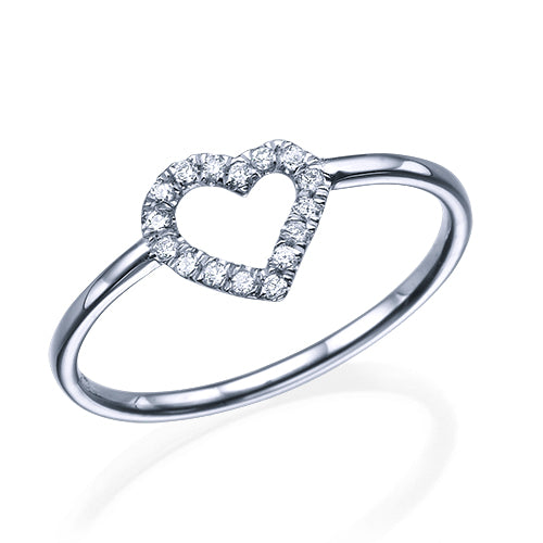 טבעת יהלומים לב 0.15 קראט זהב לבן