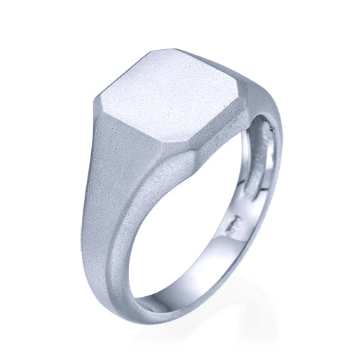 טבעת חותם זהב לבן מט