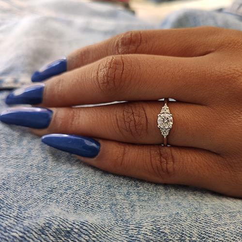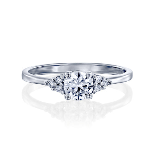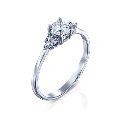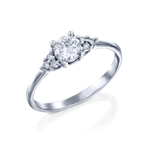 טבעת יהלומים במראה עתיק אשר משובצת 7 יהלומים בסך הכל.בכל צד של הטבעת משובצים שלושה יהלומים ובמרכזה משובץ יהלום עגול וגדול המשקיף על הטבעת ומאיר אותה עם ברק וניצוצות מרהיבים. טבעת אירוסין זהב לבן עם יהלום מרכזי במשקל: 0.31 קראט (משקל יהלומים כולל 0.41 קראט) בצבע F וניקיון יהלום SI1.