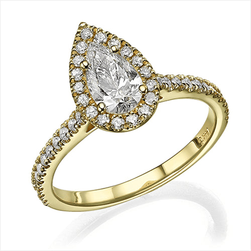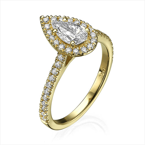 לטבעות יהלומים בצורת טיפה תמיד יש ביקוש כי הברק של יהלומי הטיפה הוא הבוהק ביותר והיהלום (בשל צורתו הארוכה) נראה יותר גדול מיהלומים בצורות אחרות. טבעת אירוסין זהב צהוב עם יהלום מרכזי במשקל: 0.31 קראט (משקל יהלומים כולל 0.81 קראט) בצבע F וניקיון יהלום SI1.