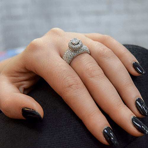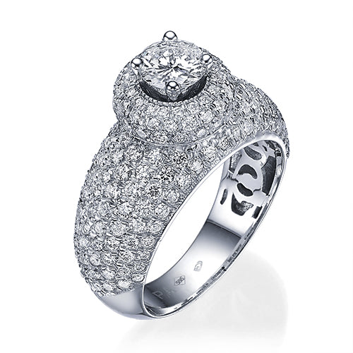 טבעת יהלומים מרשימה ביותר המשובצת מאות יהלומים במשקל 2.78 קראט. טבעת אירוסין זהב לבן עם יהלום מרכזי במשקל: 0.71 קראט (משקל יהלומים כולל 2.78 קראט) בצבע F וניקיון יהלום SI1.