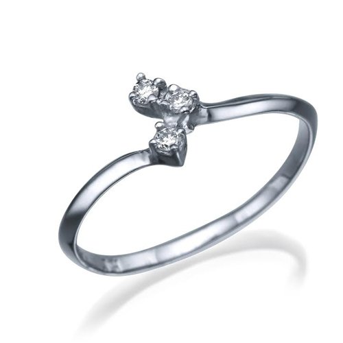 טבעת מזהב לבן צהוב או אדום משובצת 3 יהלומים מבריקים המאירים את הטבעת. טבעת אירוסין זהב לבן (משקל יהלומים כולל 0.06 קראט) בצבע D וניקיון יהלום VS1.