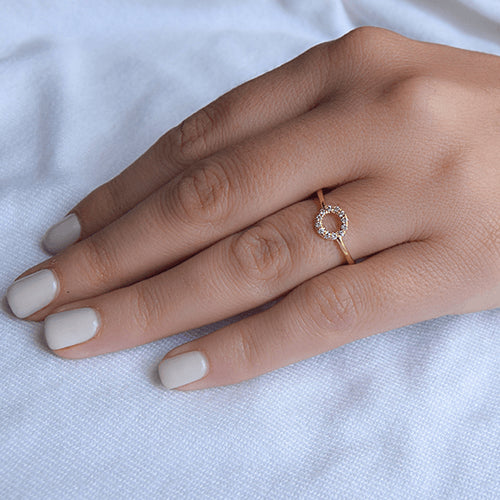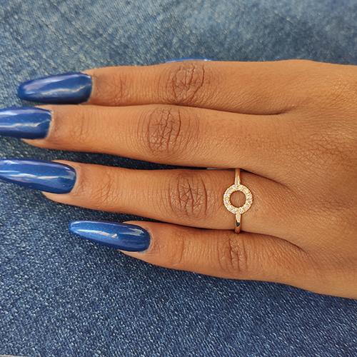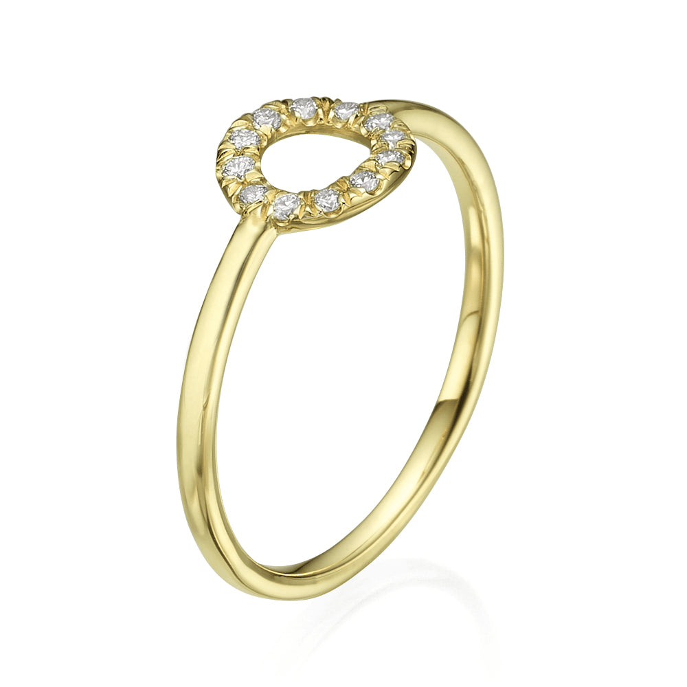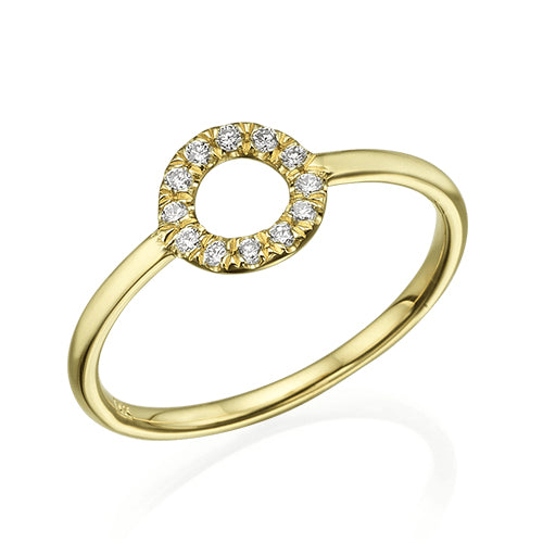 טבעת יהלומים בעיצוב "מעגל החיים" המשובצת 12 יהלומים מבריקים במשקל 0.15 קראט. טבעת אירוסין זהב צהוב (משקל יהלומים כולל 0.15 קראט) בצבע D וניקיון יהלום VS1.