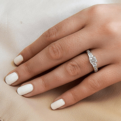טבעת אירוסין קיסר זהב לבן משובצת פרינסס