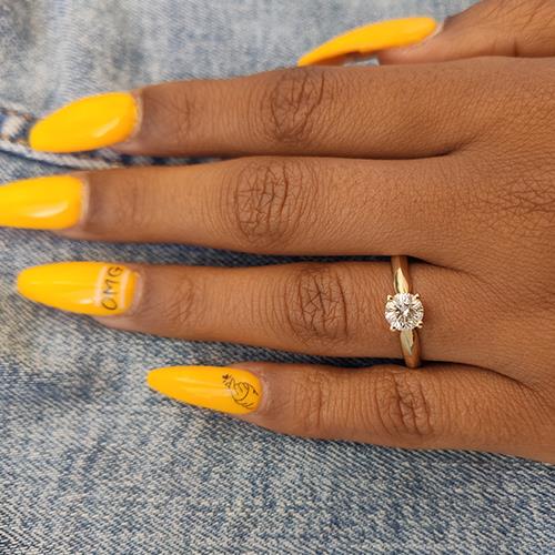 טבעת אירוסין קלאסית מזהב צהוב מדונה היא אחת הטבעות הנמכרות ביותר. בין אם בוחרים ביהלום עגול או מרובע, זו טבעת שתשאיר את החותם שלה בכל מקום שתענדו אותה. ניתן לבחור יהלום מרכזי בגדלים שונים, מ 0.25 קראט ועד 2.00 קראט. לצפייה בטבעת מדונה משובצת יהלום מרובע לחצו כאן. טבעת אירוסין זהב צהוב עם יהלום מרכזי במשקל: 0.51 קראט (משקל יהלומים כולל 0.51 קראט) בצבע F וניקיון יהלום SI1.