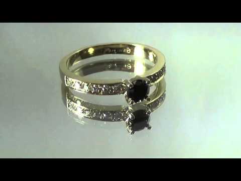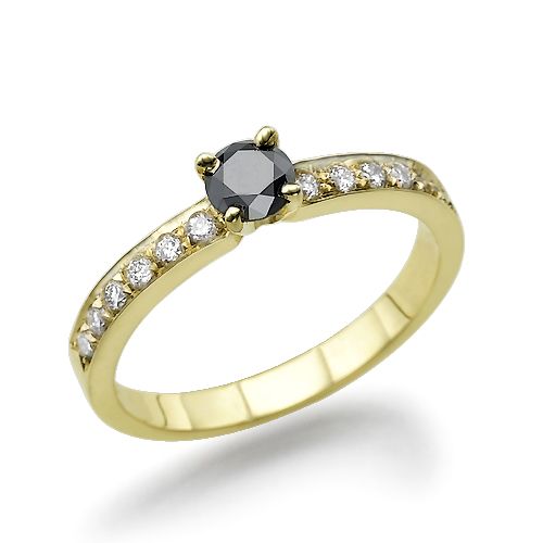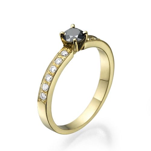 טבעת אירוסין משובצת יהלום טבעי בצבע שחור ולצידו 6 יהלומים לבנים