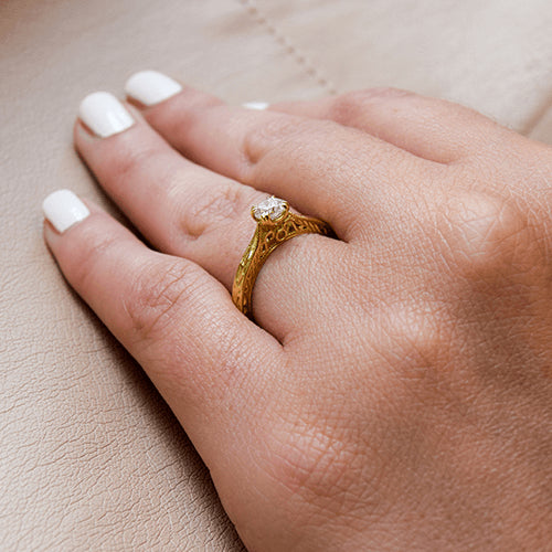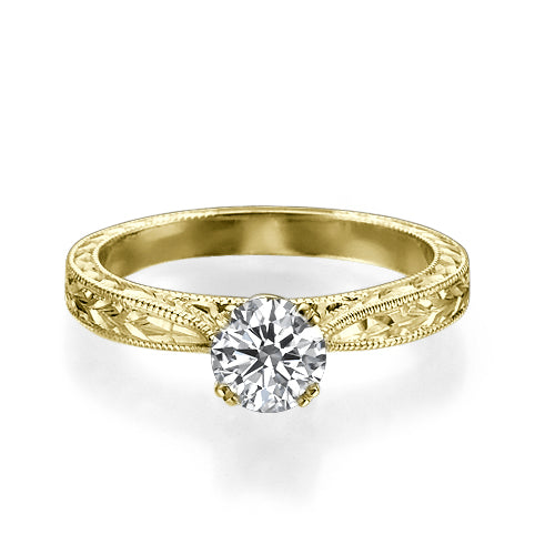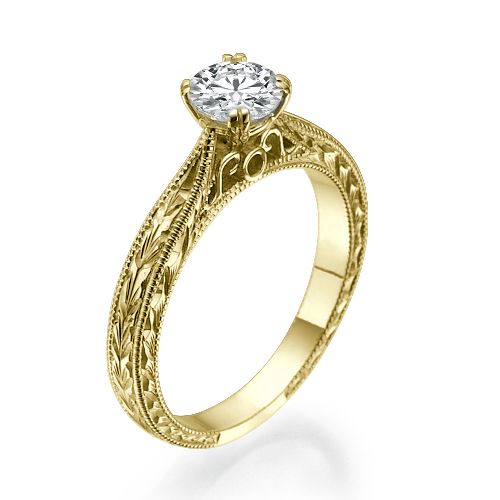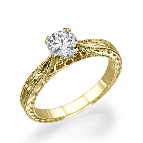 טבעת אירוסין וינטאג' 0.42 עשוייה עבודת יד קראט זהב צהוב
