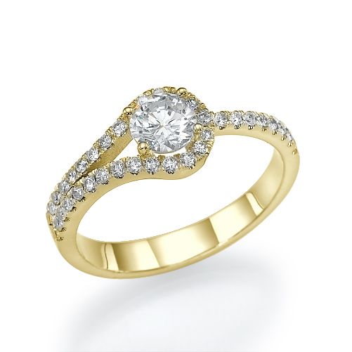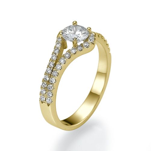 טבעת אירוסין אנה היא יצירת מופת עיצובית. שילוב מושלם וזורם בין 37 יהלומים המשובצים לאורך הטבעת ויהלום גדול במרכז הטבעת להשלמת המראה הייחודי. ניתן לבחור יהלום מרכזי במשקל 0.35 - 0.70 קראט. טבעת אירוסין זהב צהוב עם יהלום מרכזי במשקל: 0.41 קראט (משקל יהלומים כולל 0.76 קראט) בצבע F וניקיון יהלום SI1.