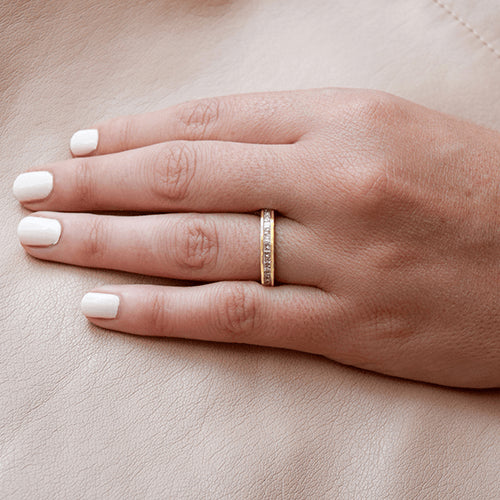 טבעת יהלומים קלאסית המתאימה כטבעת אירוסין או כטבעת הנענדת לצד כל טבעת יהלום אחרת. בטבעת פאולה משובצים 14 יהלומים מרובעים בחיתוך פרינסס יוקרתי. טבעת אירוסין זהב צהוב (משקל יהלומים כולל 0.69 קראט) בצבע D וניקיון יהלום VS1.