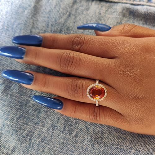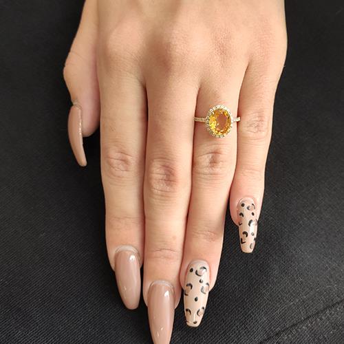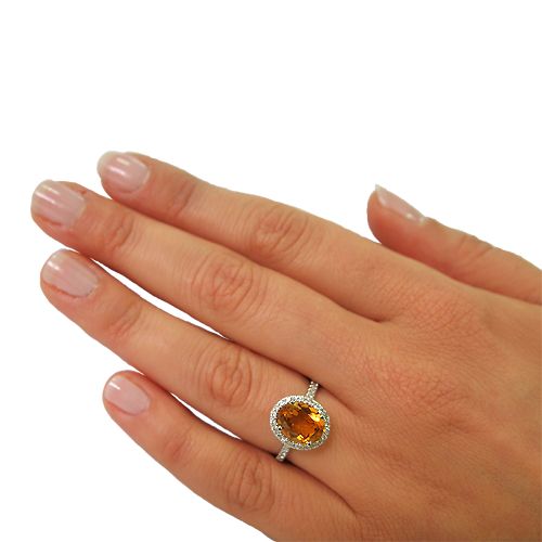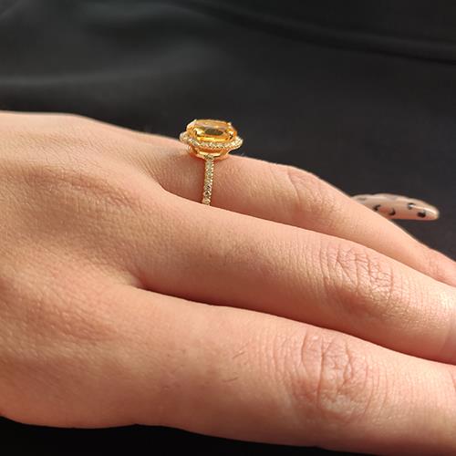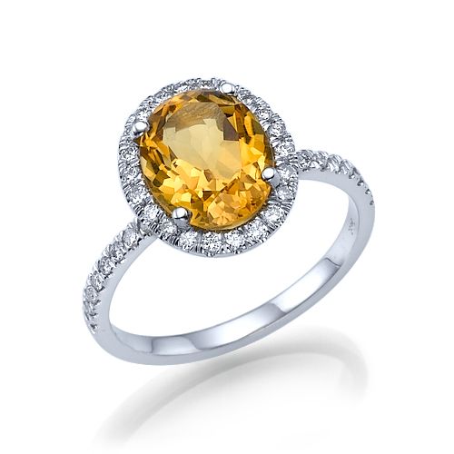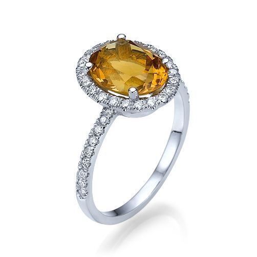 טבעת אליסון זהב לבן עם אבן סיטרין טבעית ויהלומים ליצירת מראה מואר