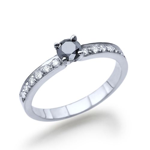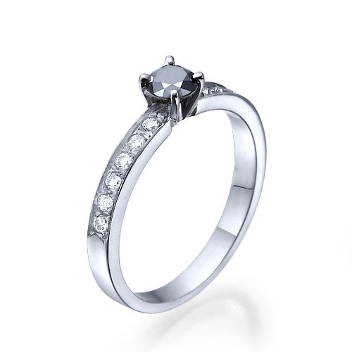 טבעת יהלום שחור טבעי המשובצת יהלומי צד