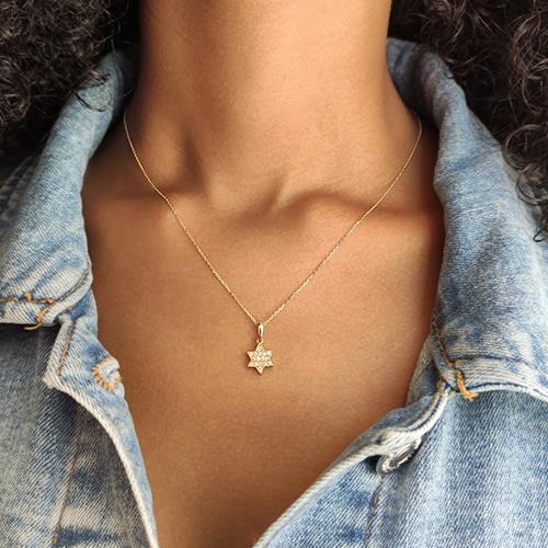 שרשרת מגן דוד מזהב עם יהלומים טבעיים במשקל 0.15 קראט