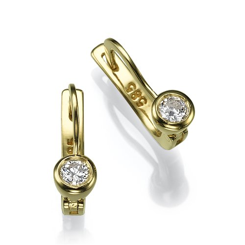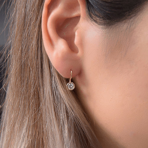 עגילים נופלים עגילי זהב תלויים עם יהלום טבעי בשיבוץ עגול