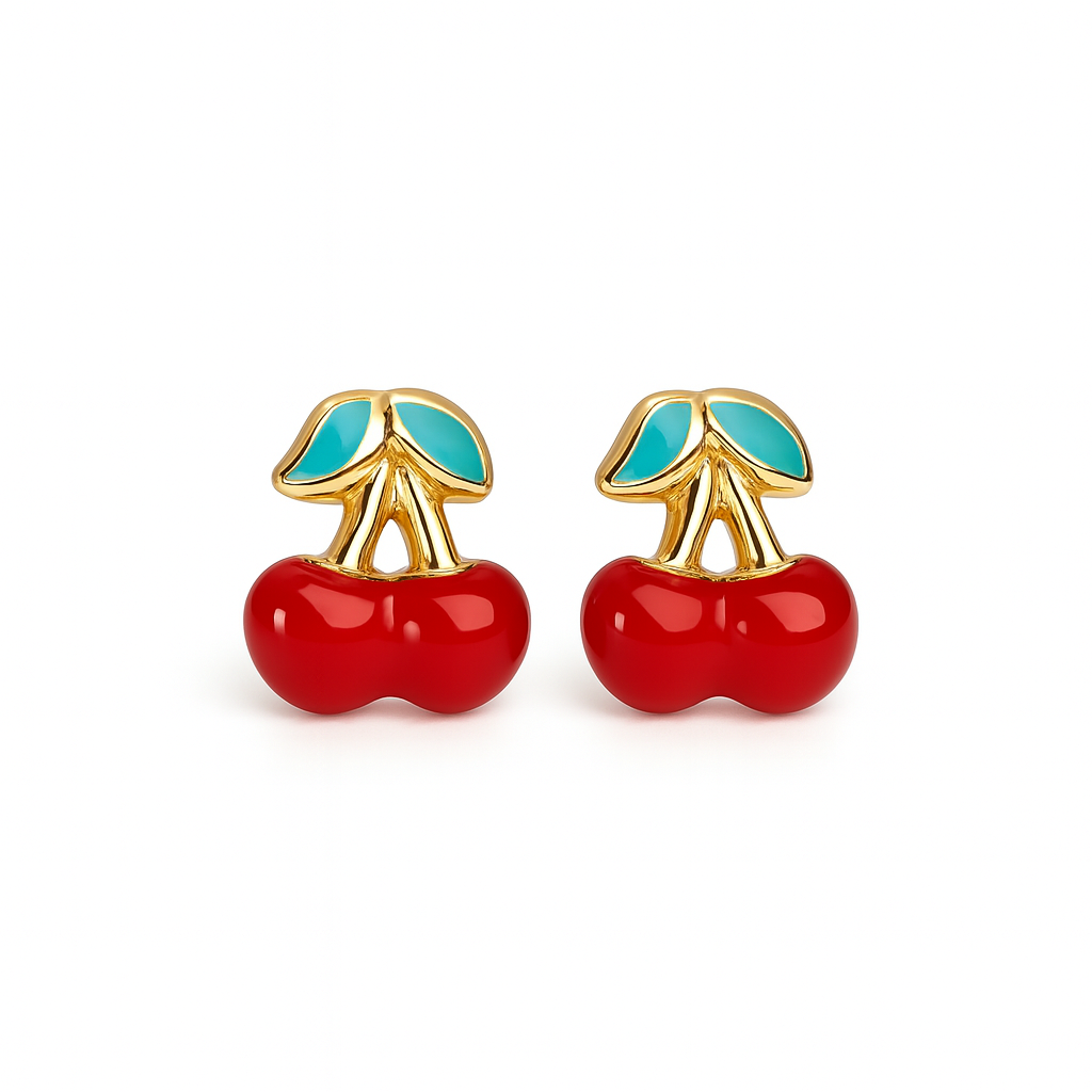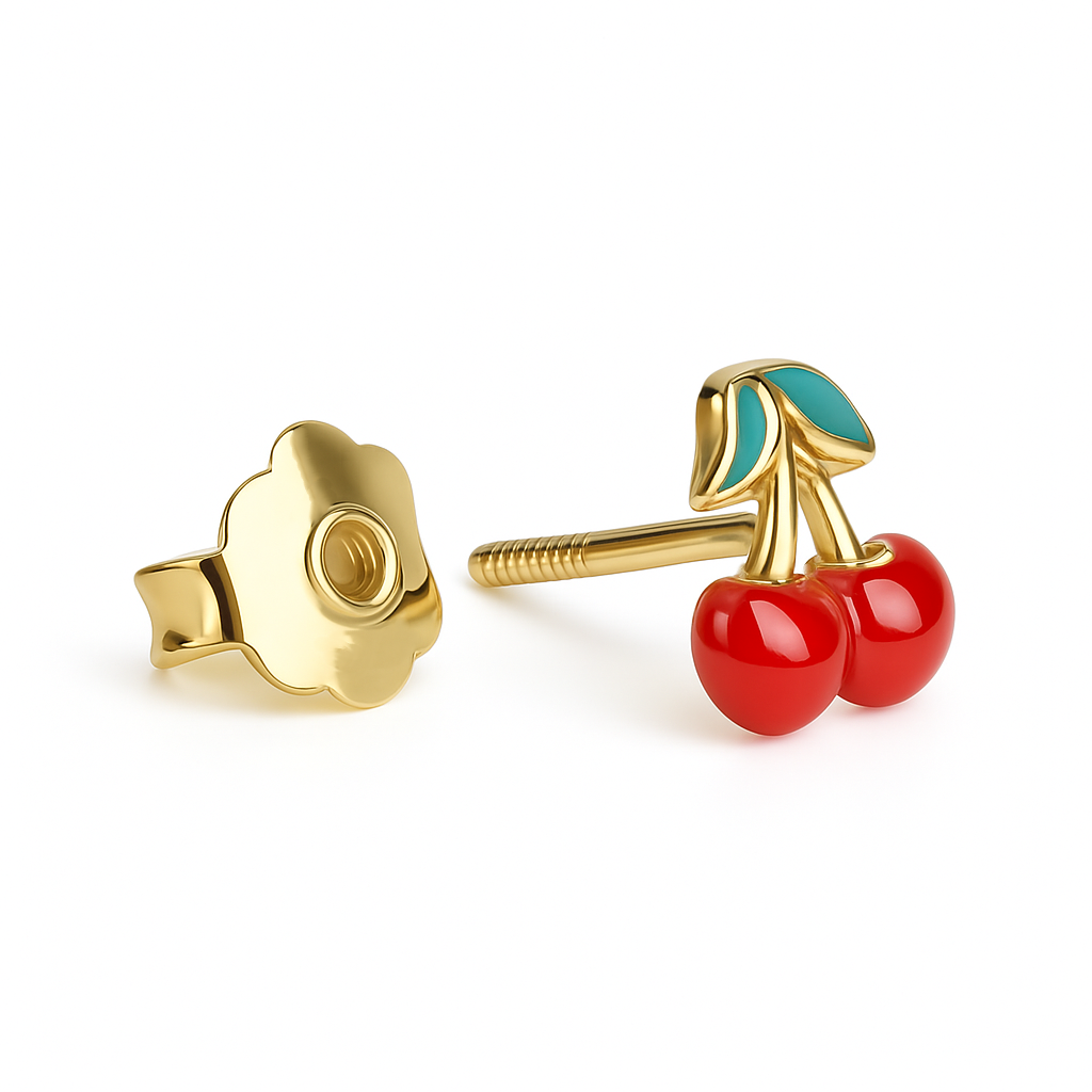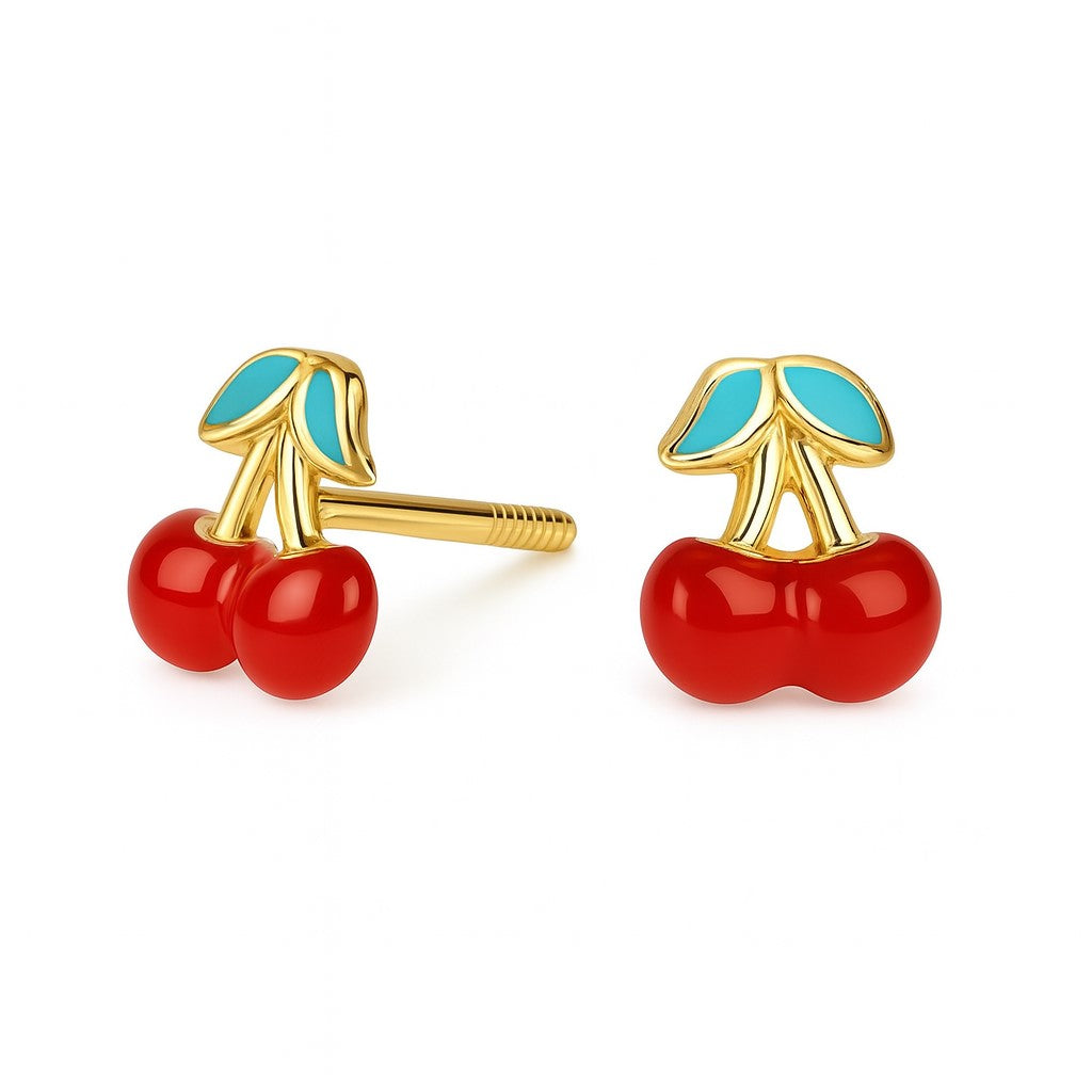 עגילי דובדבנים לילדות מזהב בעיצוב צבעוני