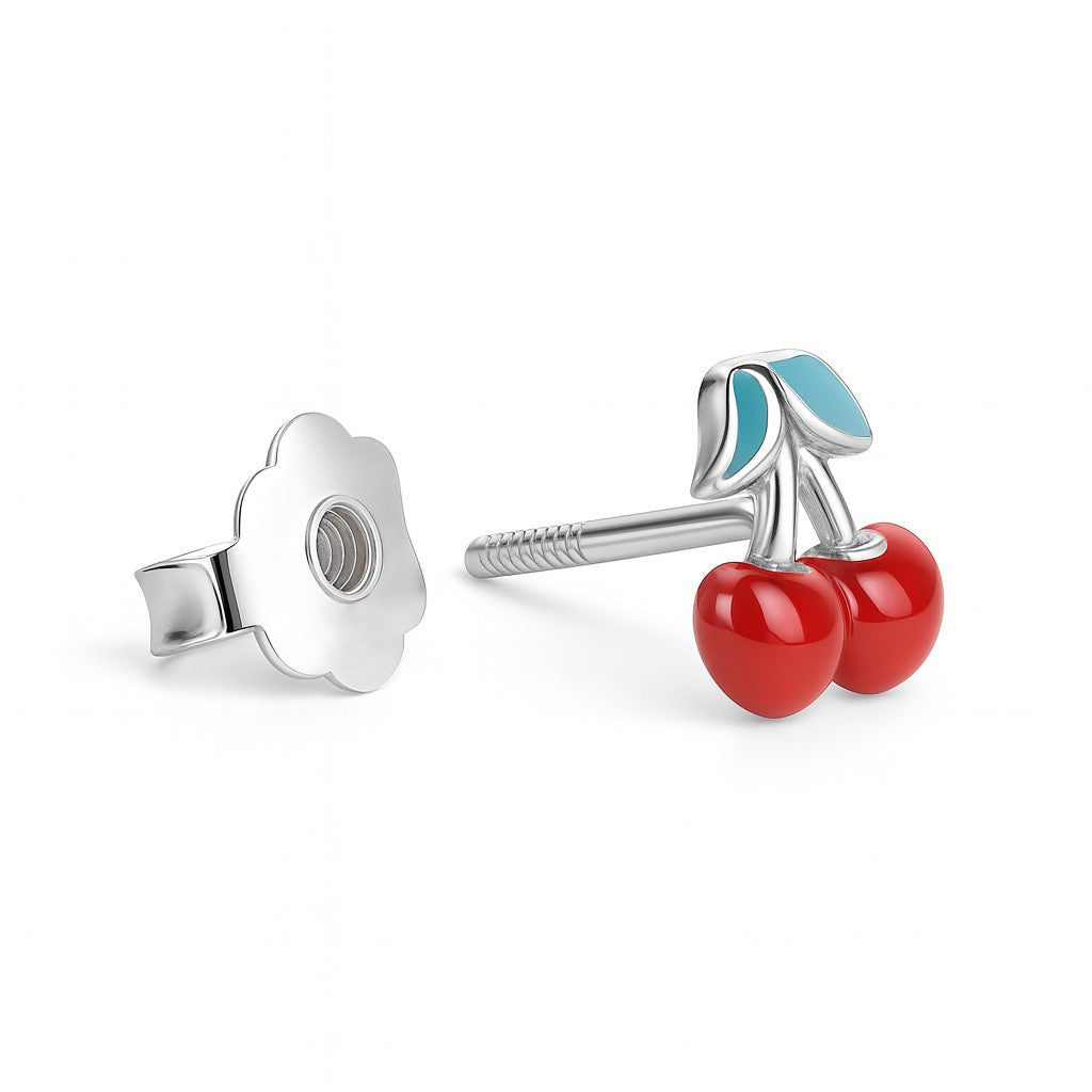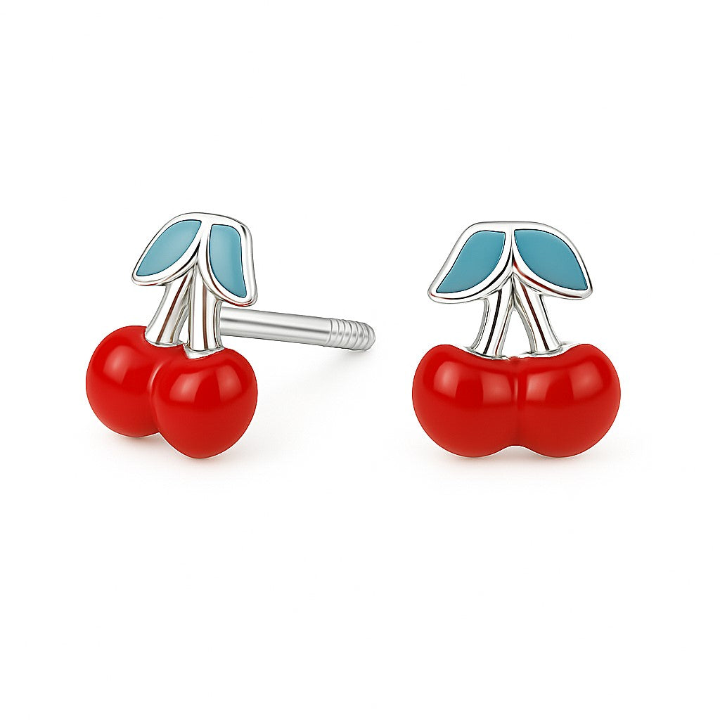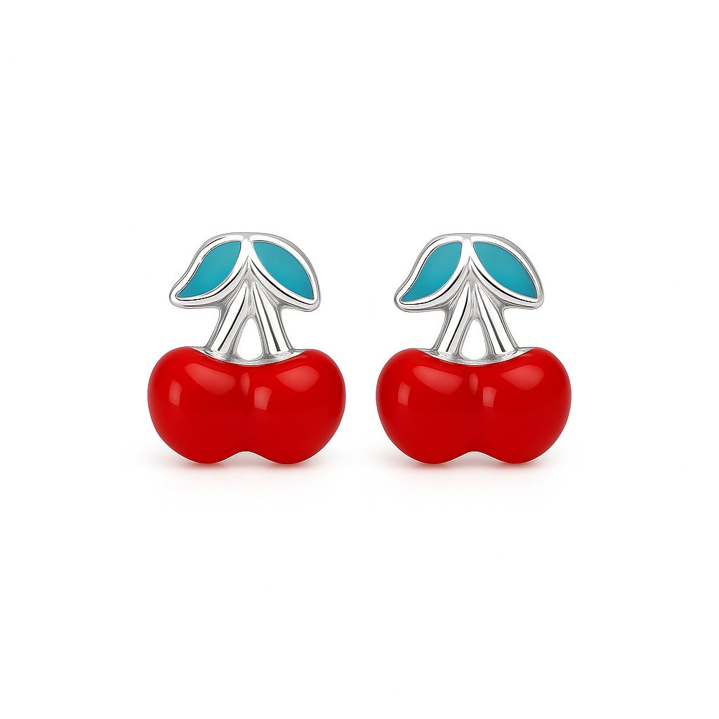 עגילי דובדבנים לילדות מזהב בעיצוב צבעוני