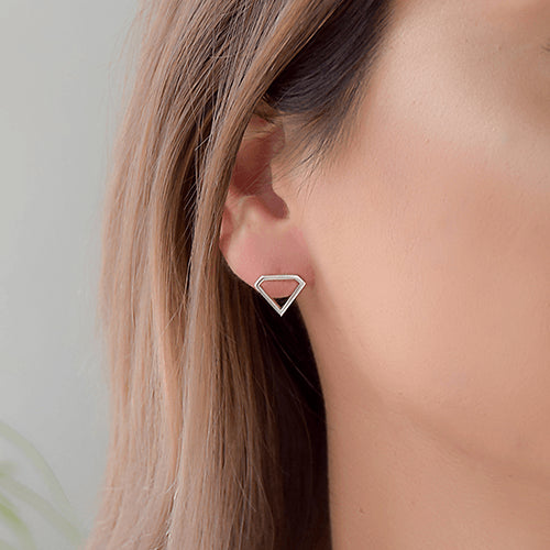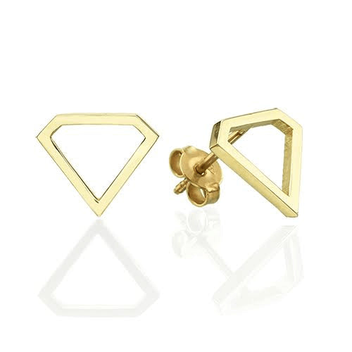 עגילי זהב צמודים בעיצוב צורת יהלום מזהב