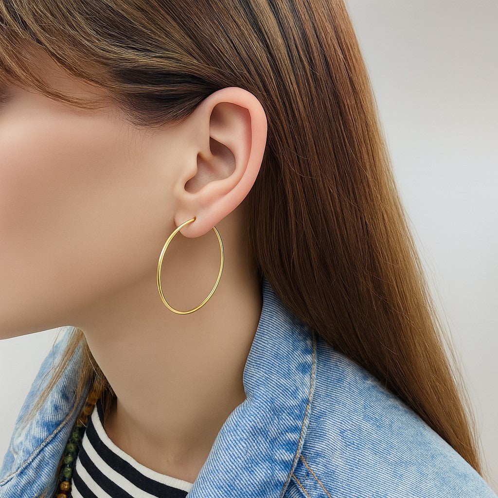 עגילי חישוק זהב בקוטר 4 ס"מ בעיצוב נקי ומדויק למראה יומיומי עם נוכחות אלגנטית