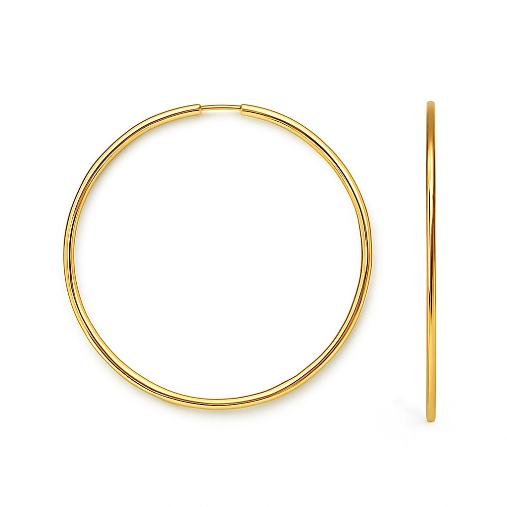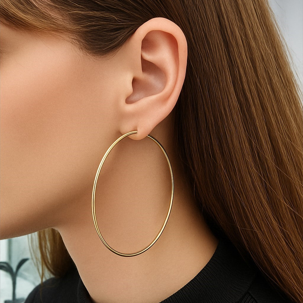 עגילי חישוק גדולים זהב צהוב בעיצוב אלגנטי ועדין קוטר 6 ס"מ
