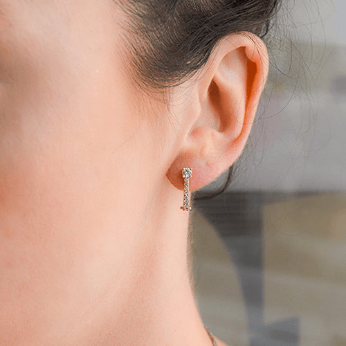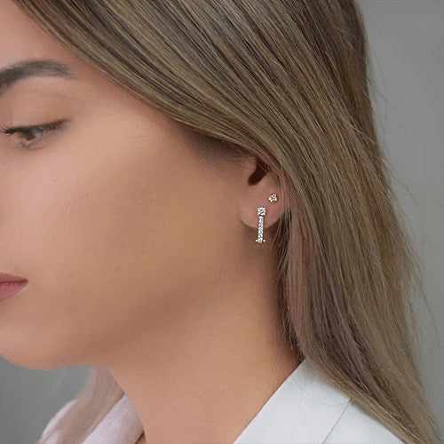 עגילי יהלומים מזהב לבן בעיצוב תלוי עם שורת יהלומים טבעיים נוצצים