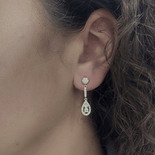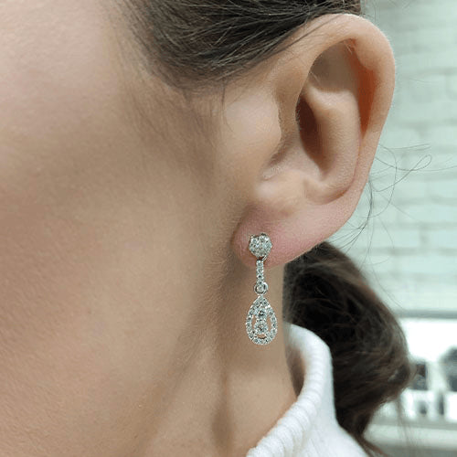 עגילי יהלום נופלים בצורת טיפה 0.90 קראט יהלומים טבעיים
