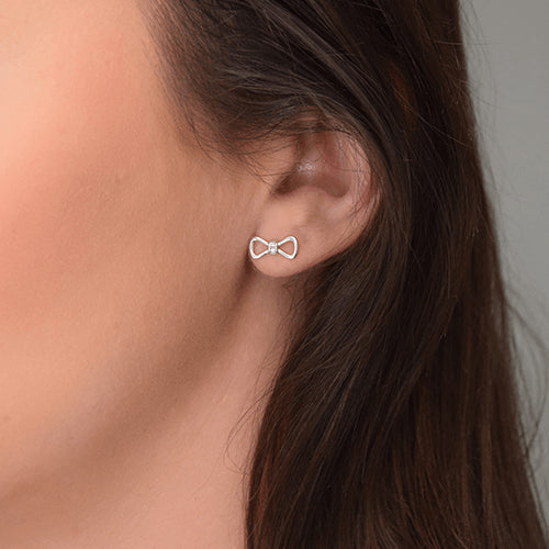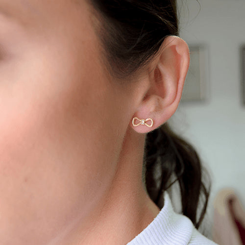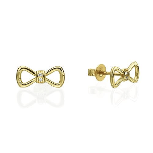 עגילי פפיון צמודים מזהב עם יהלומים טבעיים