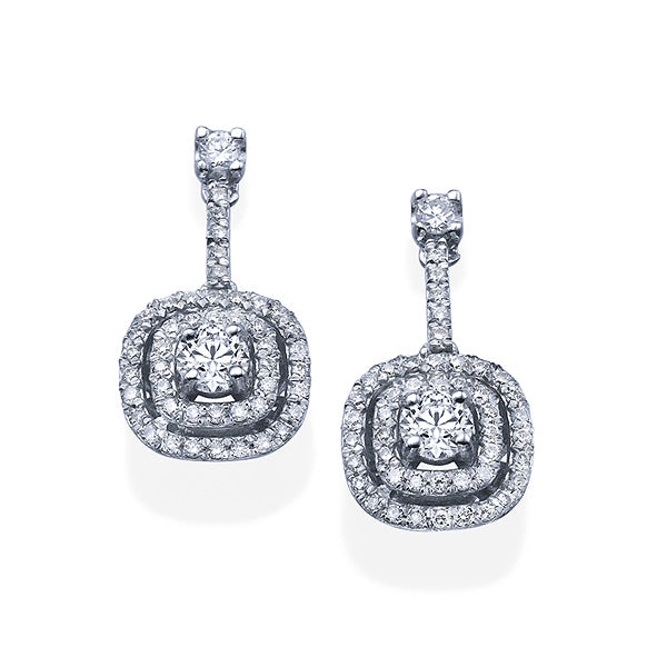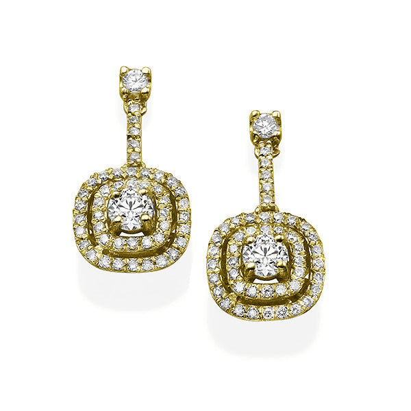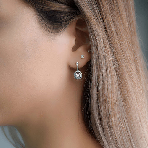עגילי יהלומים תלויים מרובעים בעיצוב שכבות