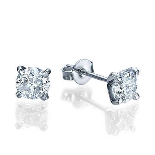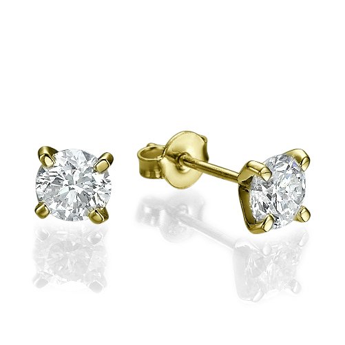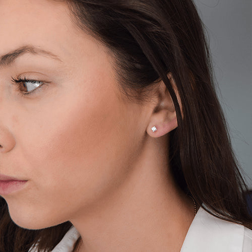 עגילי סטאד יהלומים טבעיים בעיצוב קלאסי ארבע שיניים