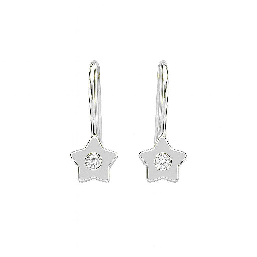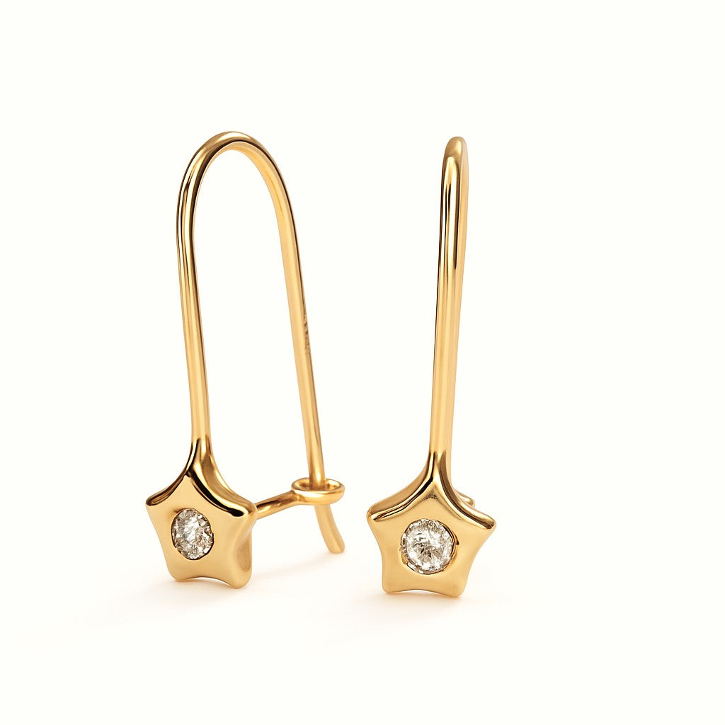 עגילי כוכב תלויים לילדות מזהב עם זירקון עדין