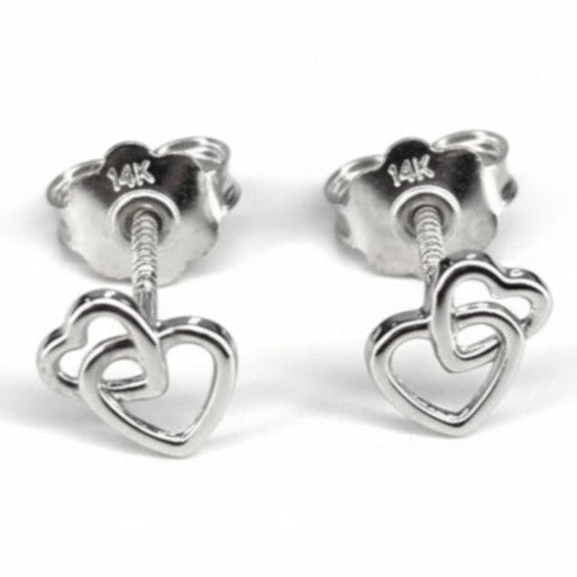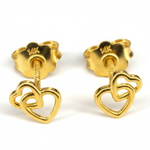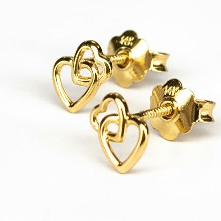 עגילי לבבות חופפים לילדות מזהב מבריק