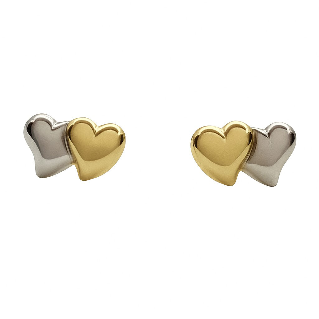 עגילי לבבות לילדות מזהב לבן וצהוב