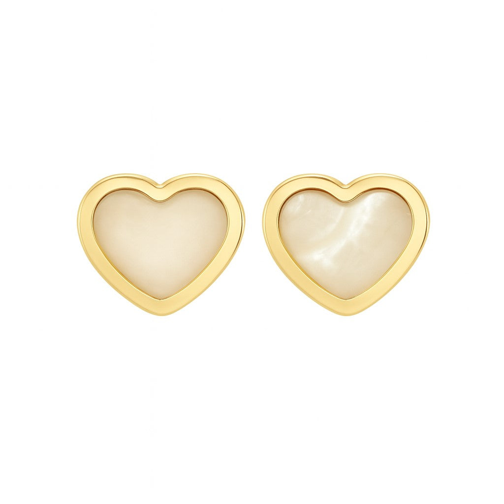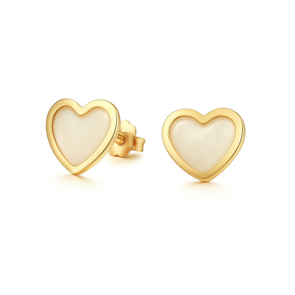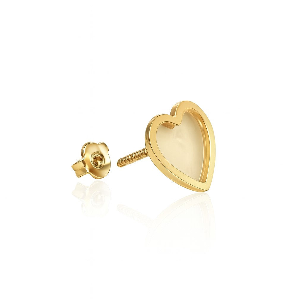 עגילי לב לילדות מזהב עם אמייל פנינה