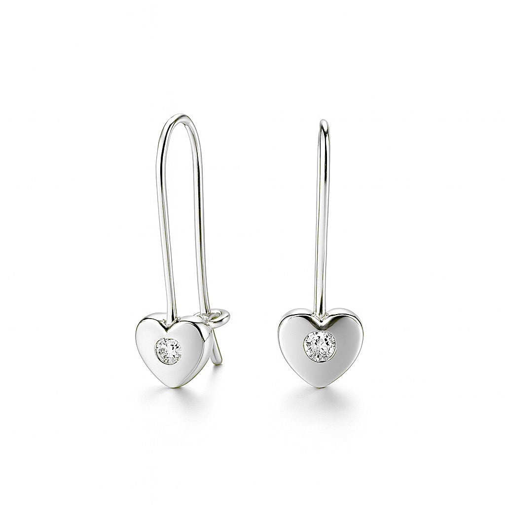 עגילי לב תלויים לילדות מזהב לבן עם זרקון