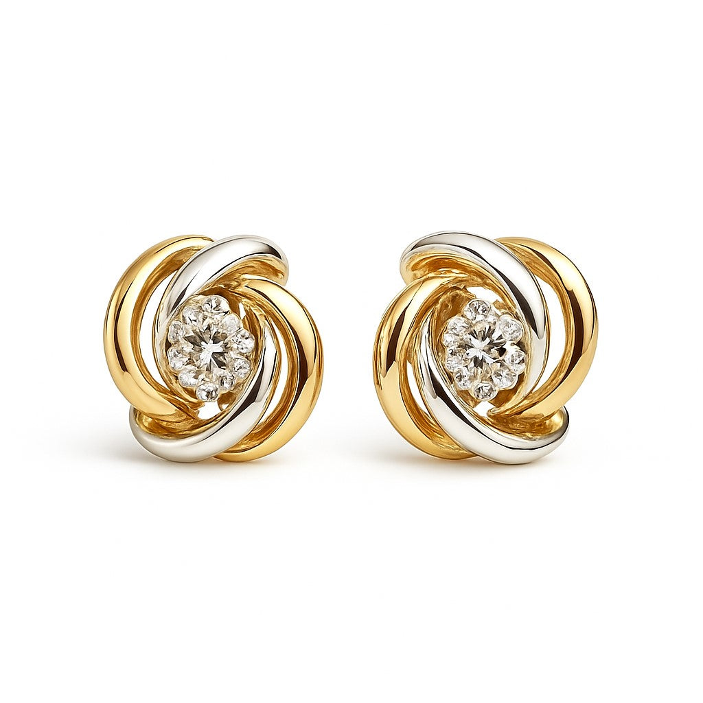 עגילי ספירלה צמודים מזהב צהוב ולבן