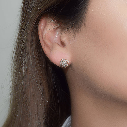 עגילי יהלומים מרובעים פאווה מזהב צהוב בעיצוב יוקרתי ונוצץ לאוזן