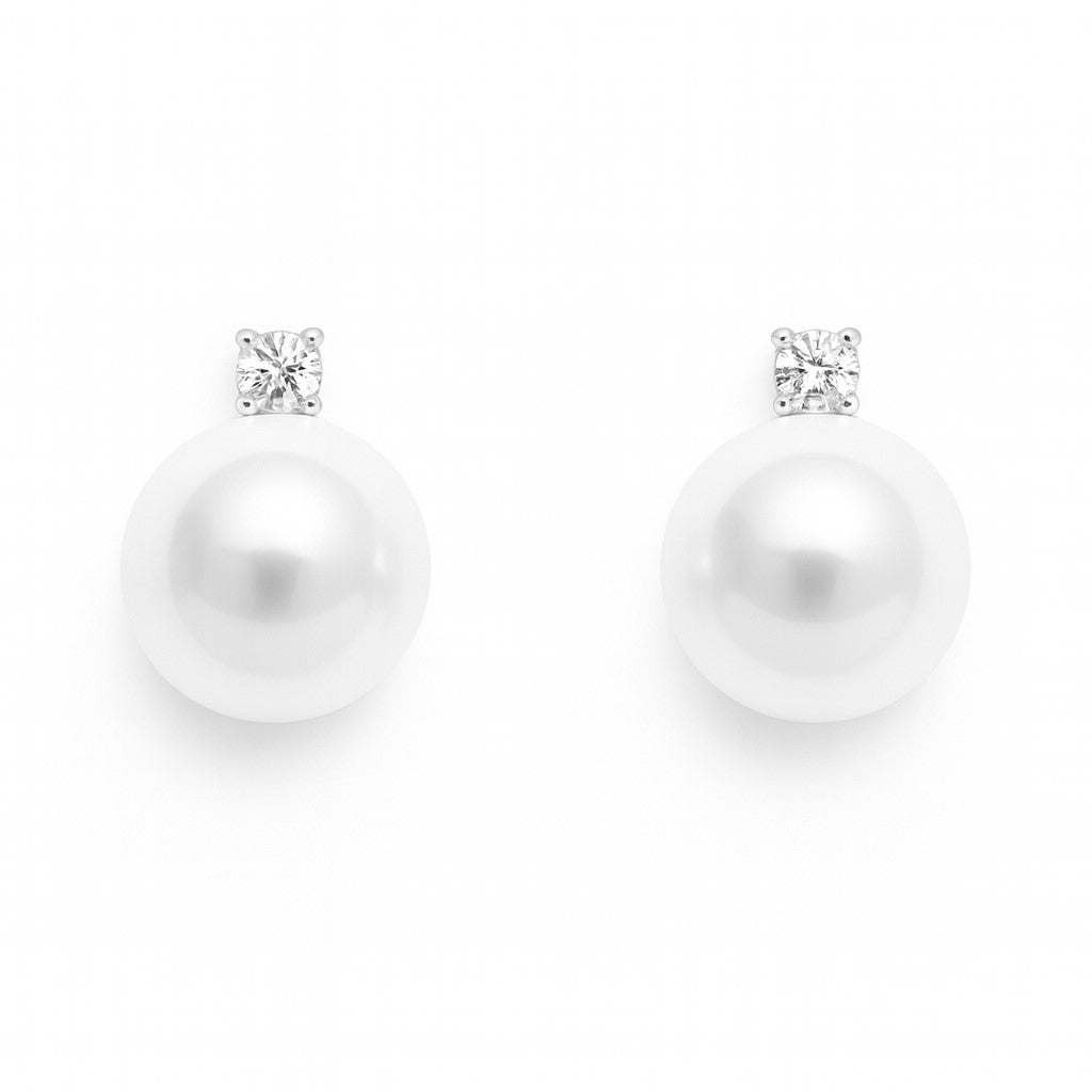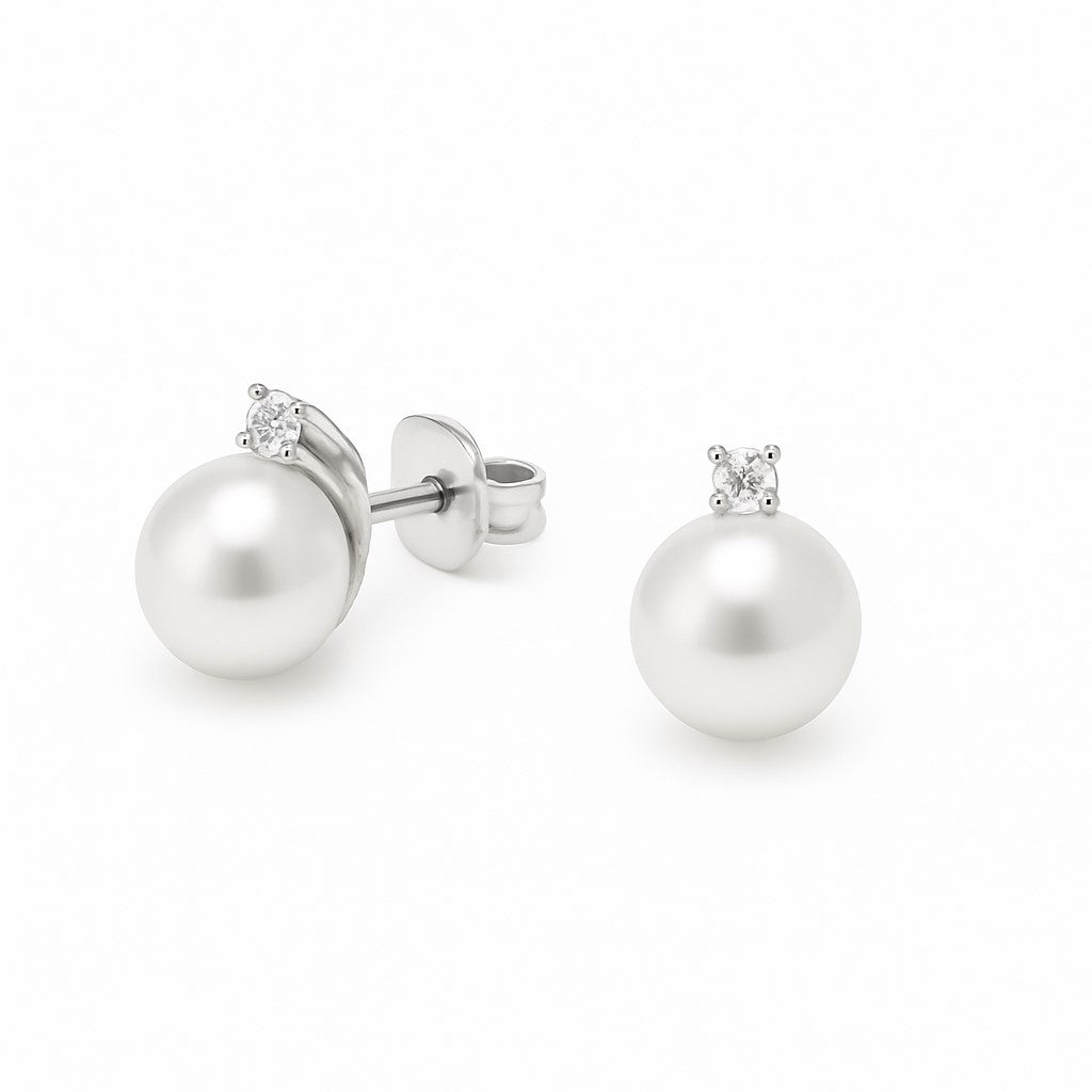 עגילי פנינה ויהלום בצמוד לאוזן מזהב לבן בעיצוב קלאסי עדין ויוקרתי