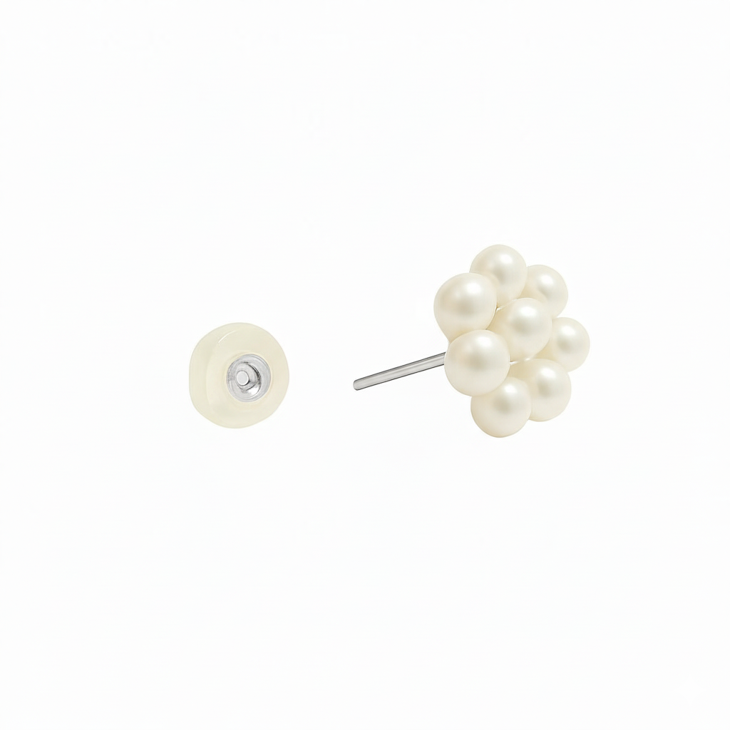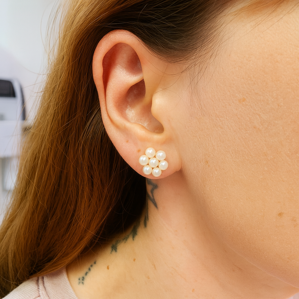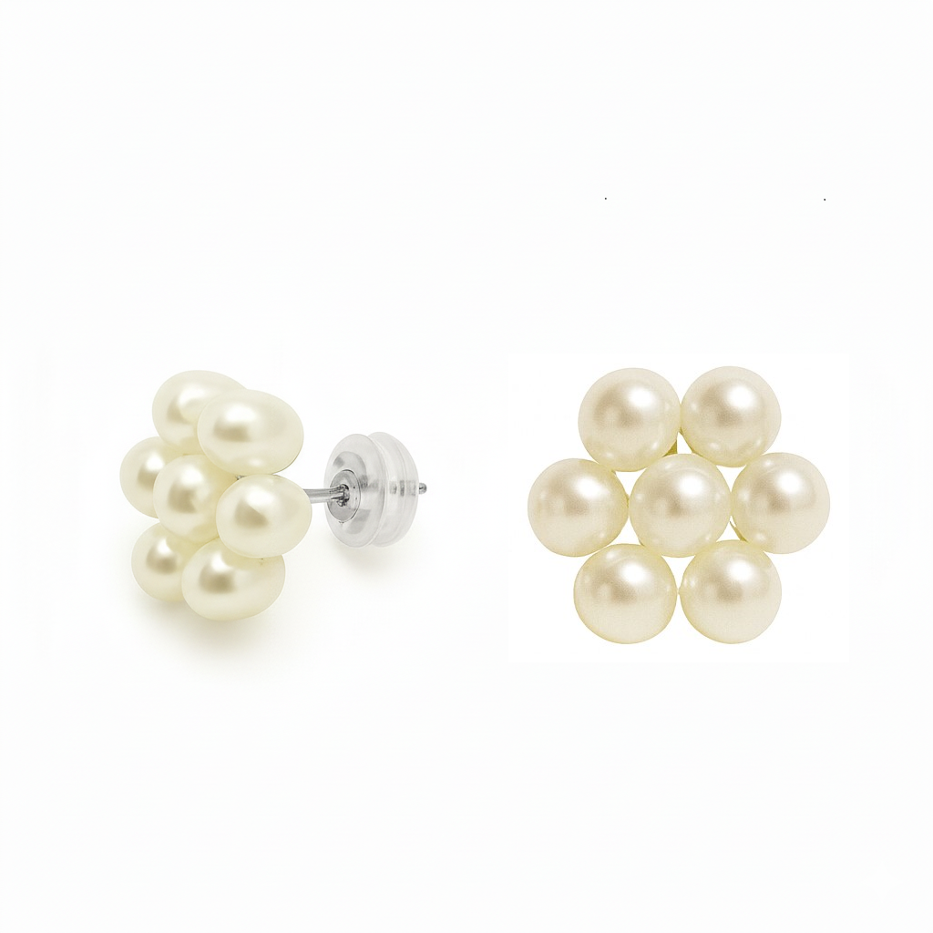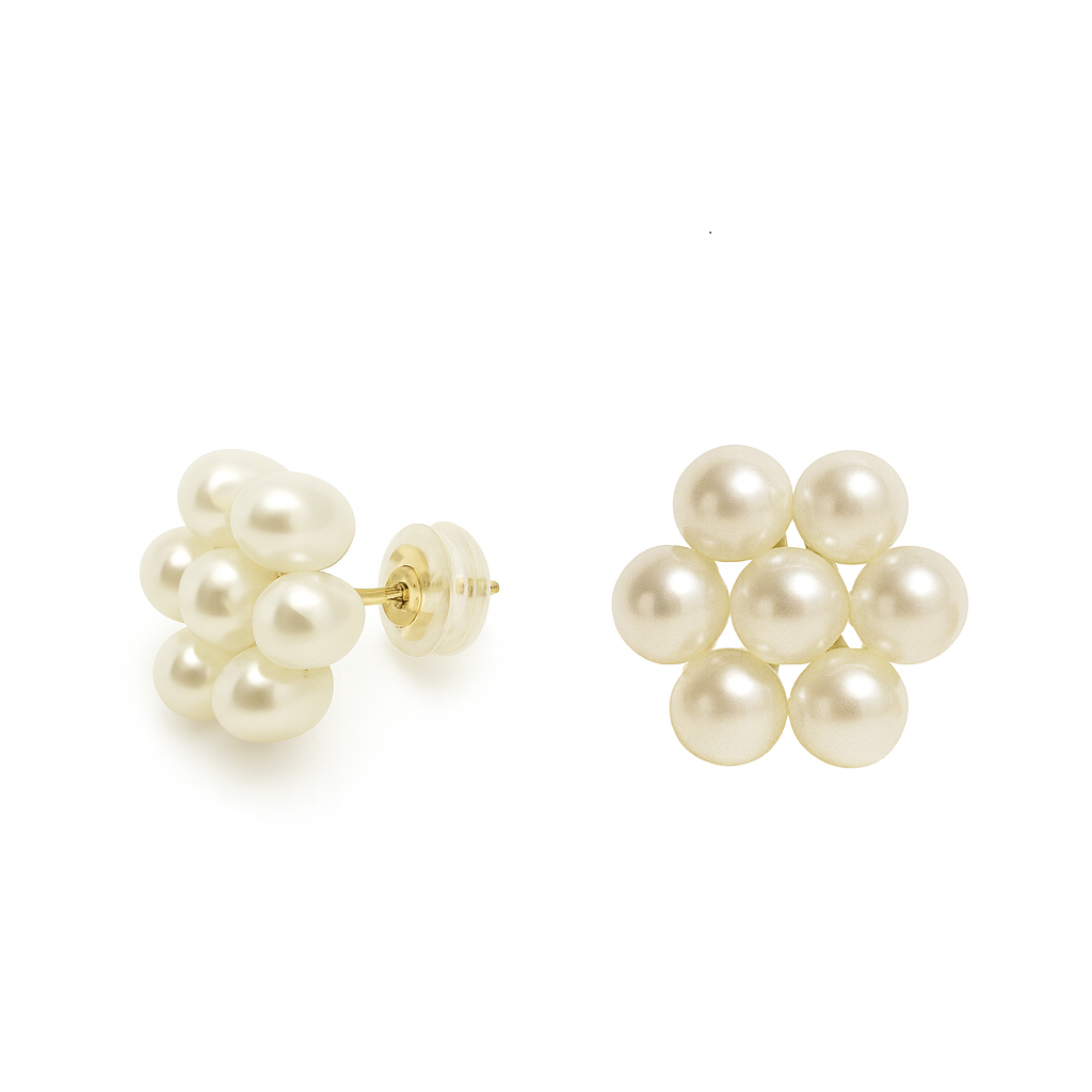 עגילי פנינים בעיצוב פרח יוקרתי עם שבע פנינים בגימור קלאסי ועדין
