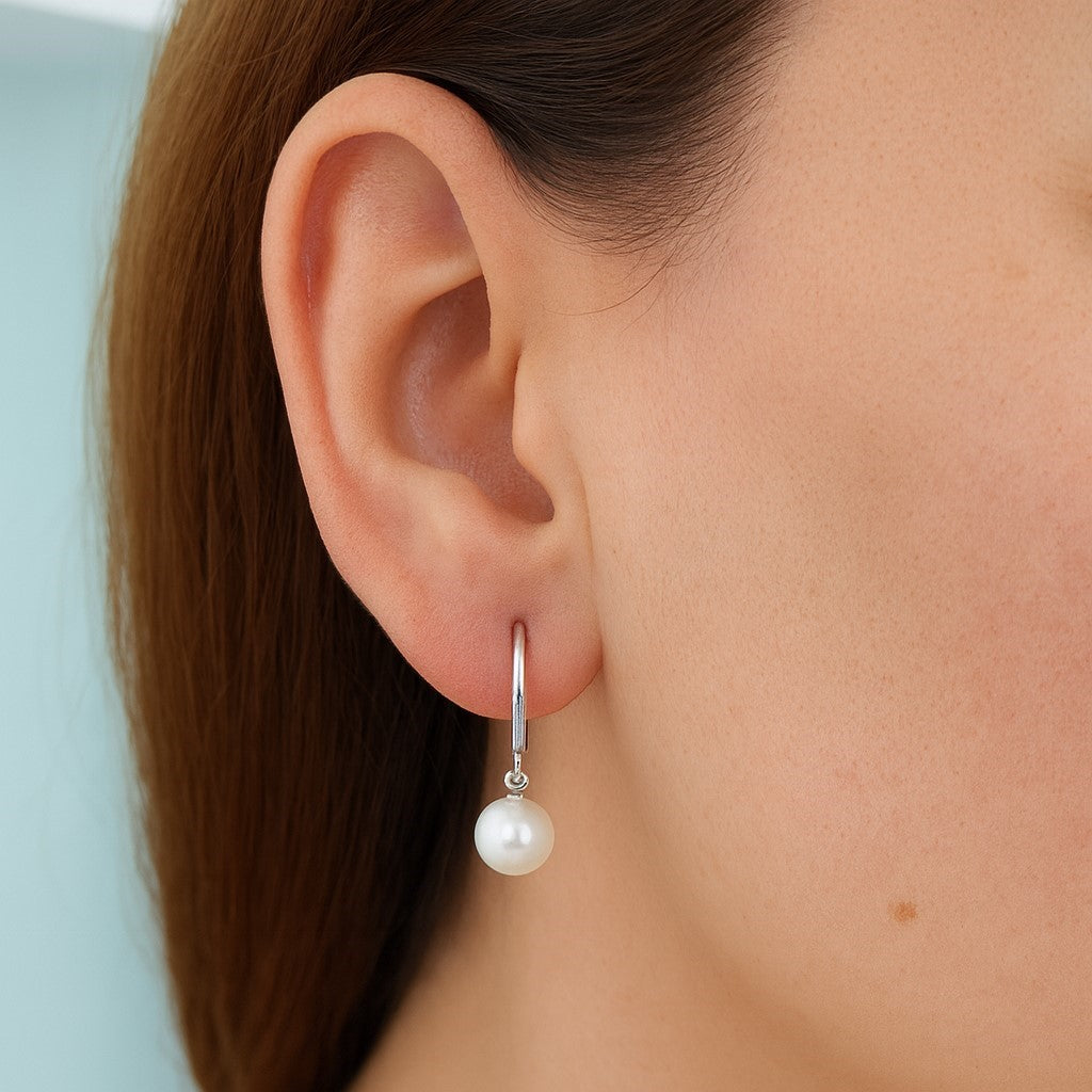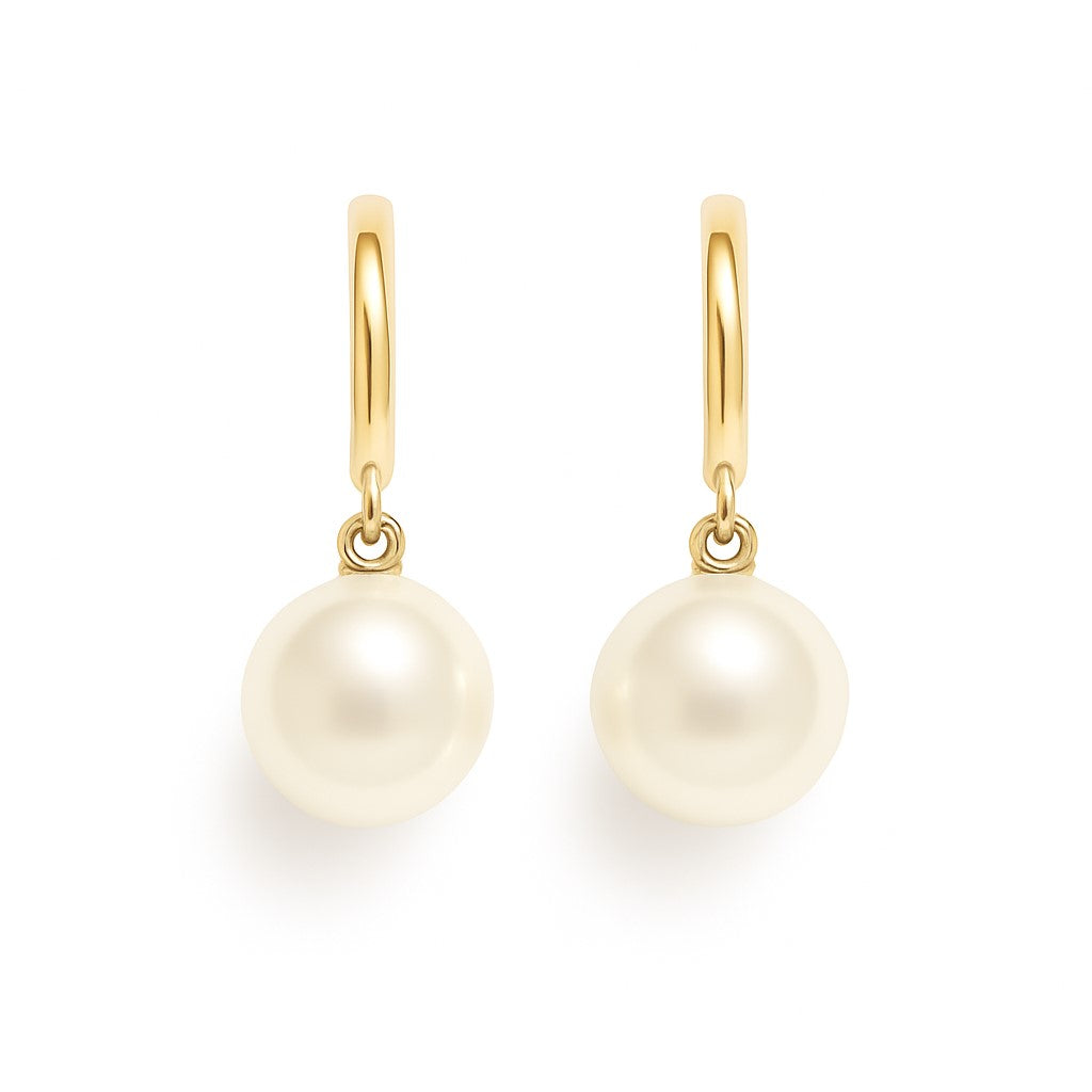 עגילי פנינה טבעית מזהב צהוב 14 קראט בעיצוב קלאסי יוקרתי ונקי
