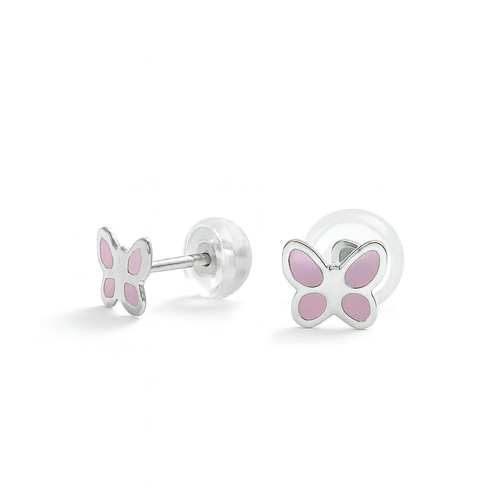 עגילי פרפר לילדות מזהב עם אמייל סגול