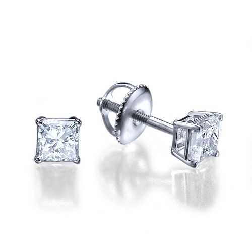 עגילי יהלומים פרינסס מרובעים מזהב בעיצוב צמוד ואלגנטי לאוזן