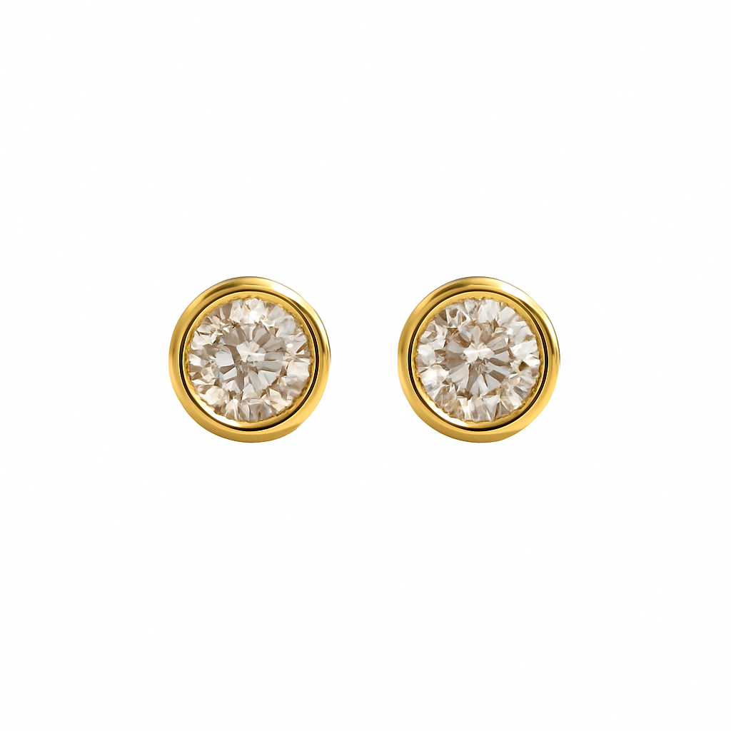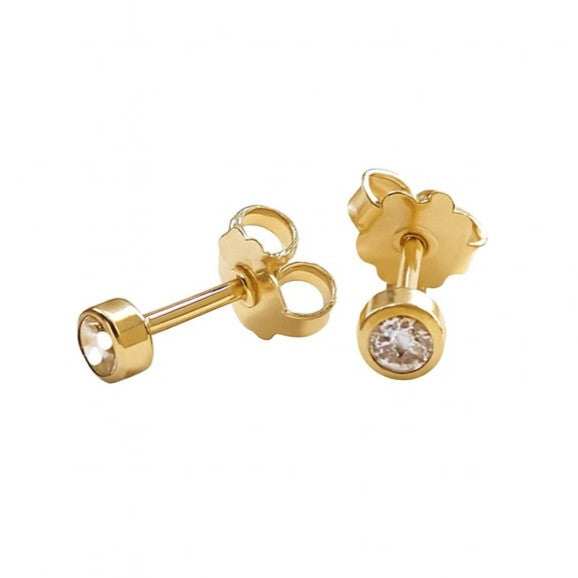 עגילים צמודים לילדה עגולים בעיצוב נקי במסגרת זהב אלגנטית
