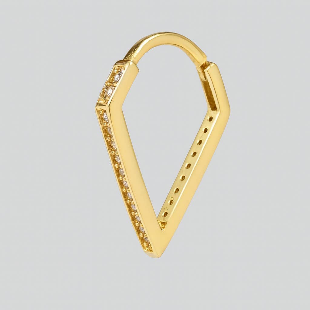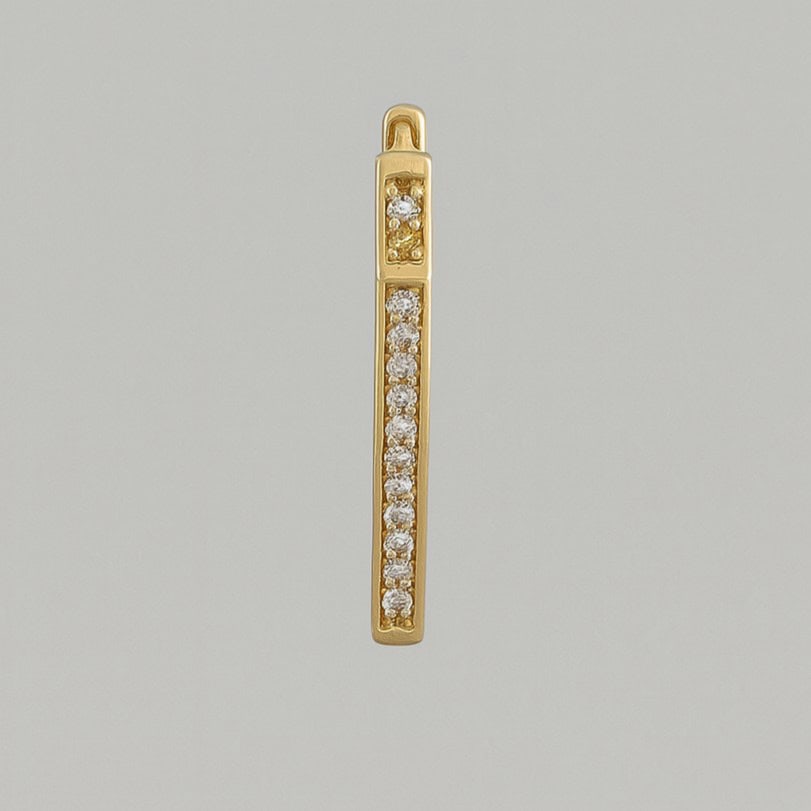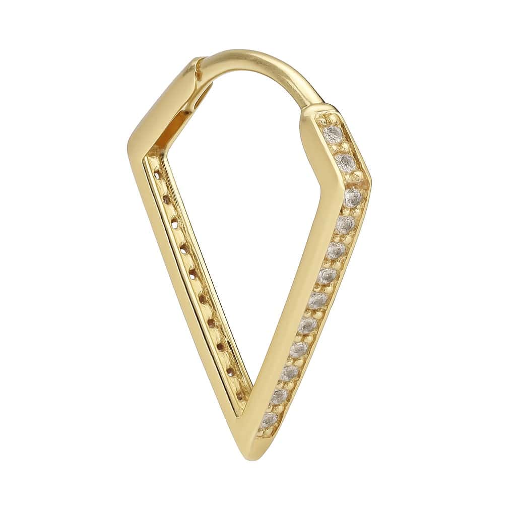 עגיל חישוק משולש מזהב צהוב 14K עם שיבוץ יהלומים