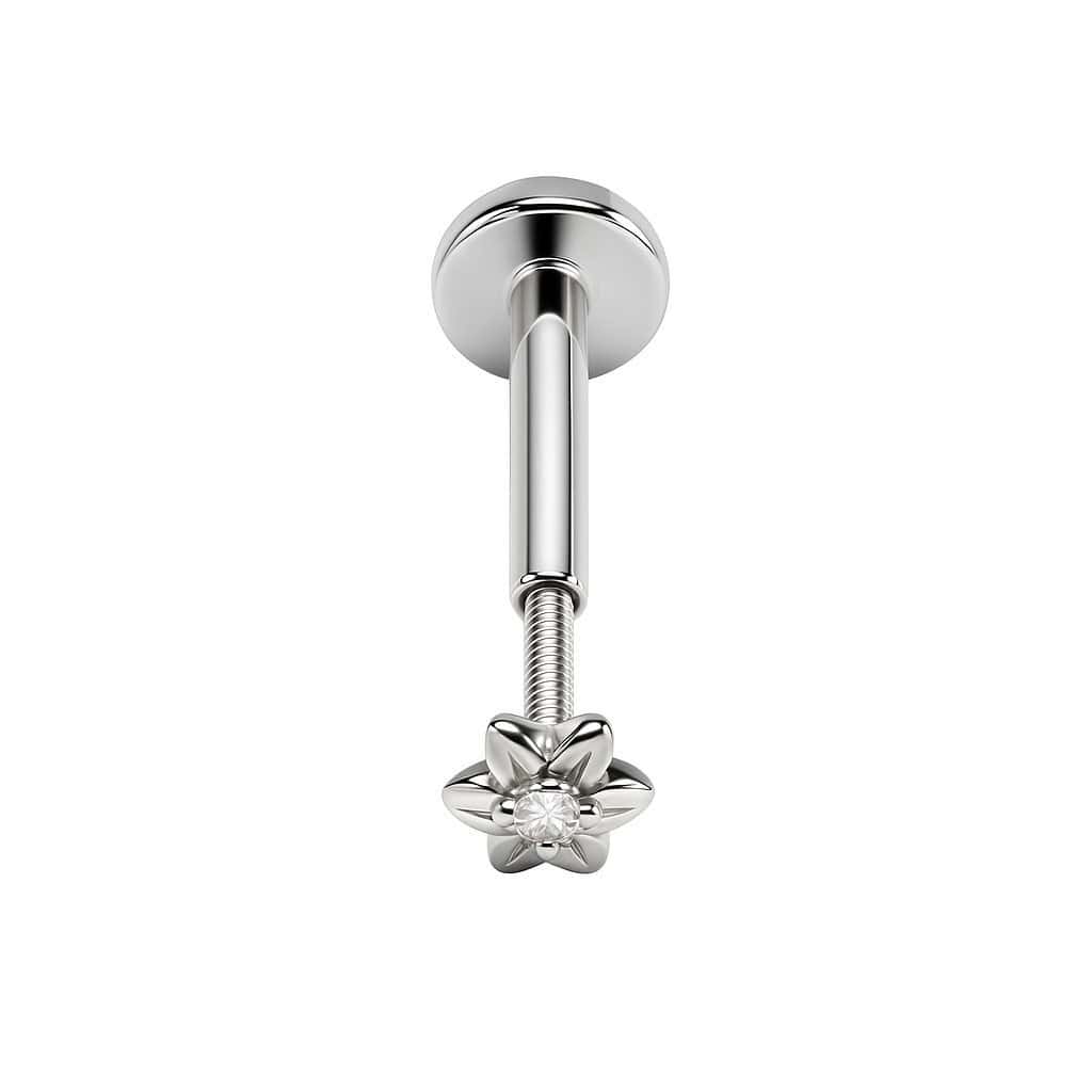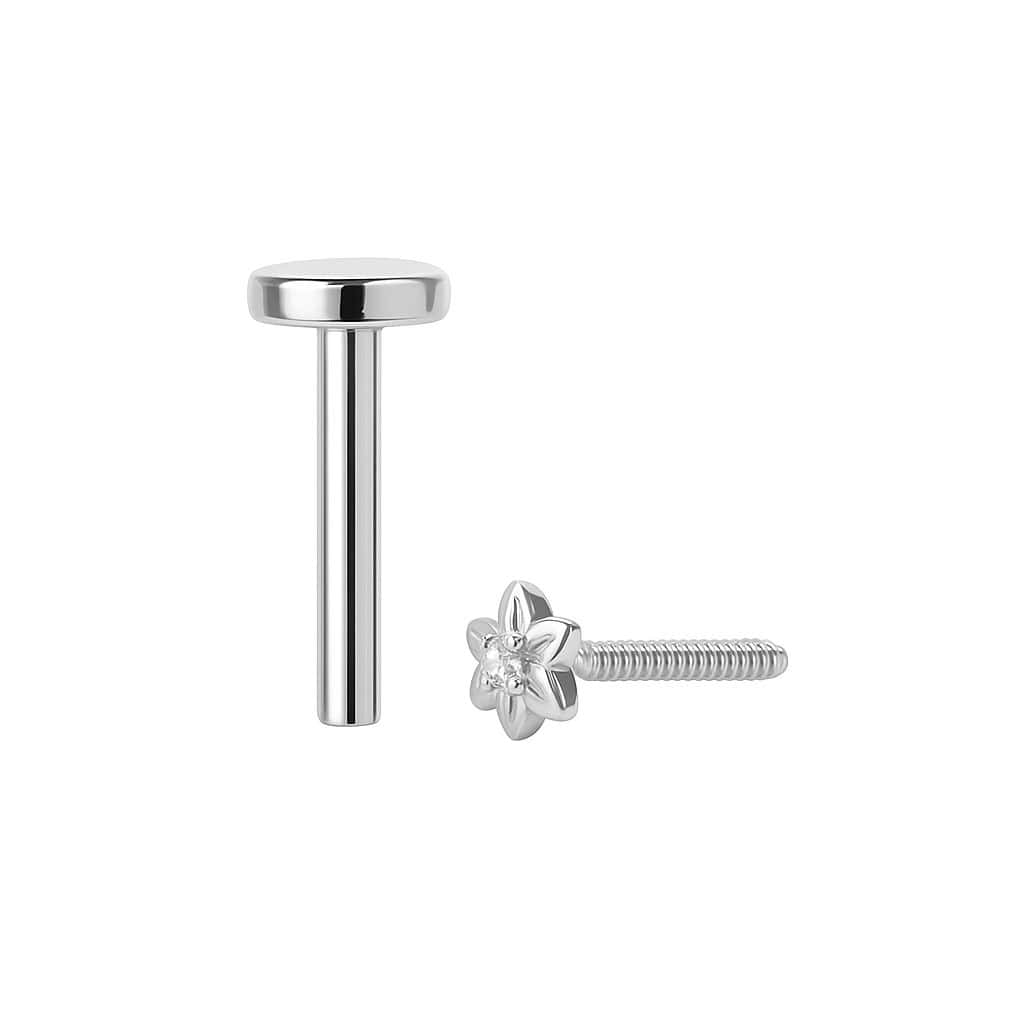 עגיל פרח זהב לבן עם יהלום לפירסינג